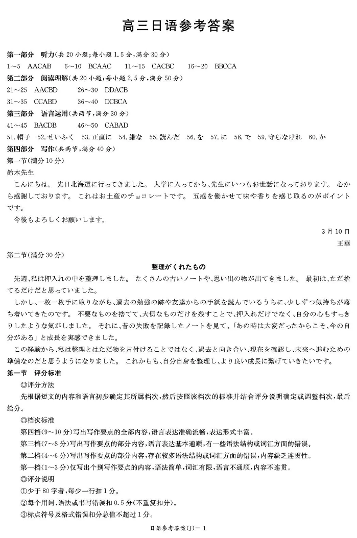 湖南省九校联盟2026届高三第二次联考(暨怀化市一模)日语答案.pdf