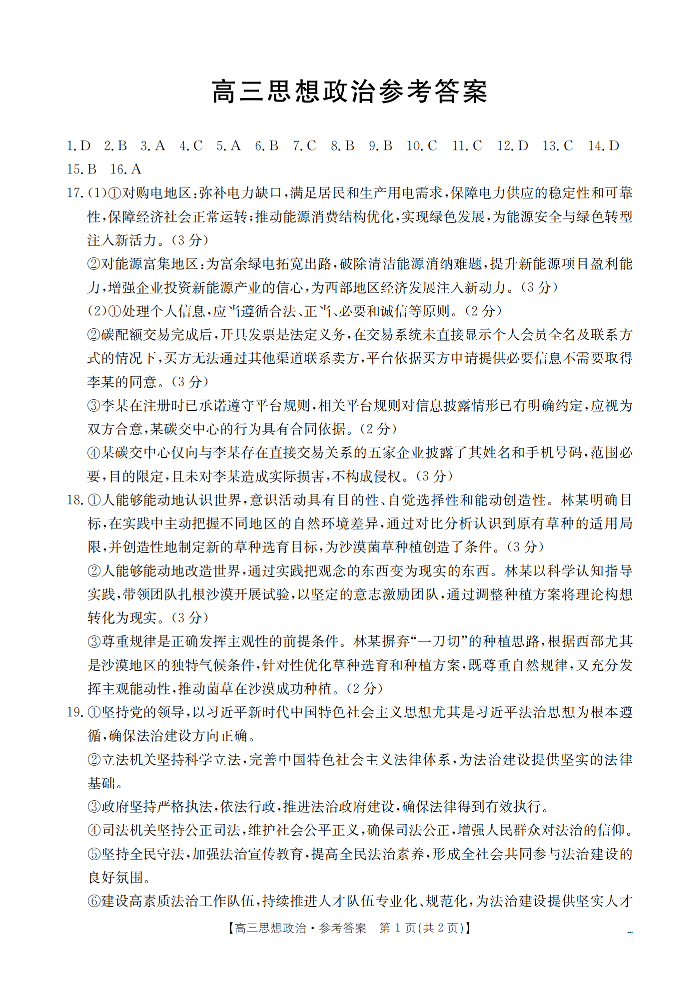福建省2026届高三下学期2月开学联考 政治答案.pdf