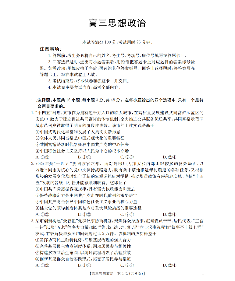 福建省2026届高三下学期2月开学联考 政治.pdf