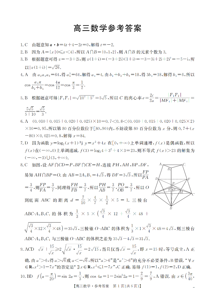 福建省2026届高三下学期2月开学联考 数学答案.pdf