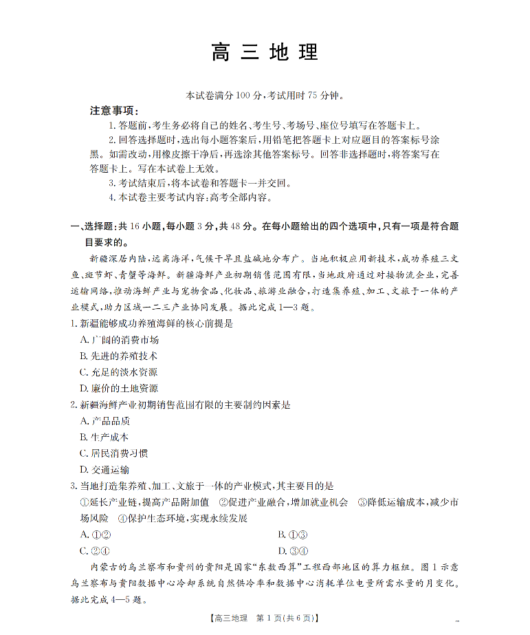 福建省2026届高三下学期2月开学联考 地理.pdf