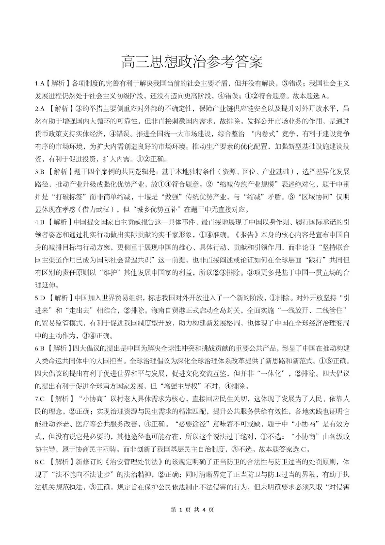 湖北省随州市2026届高三下学期二模考试 政治答案.pdf