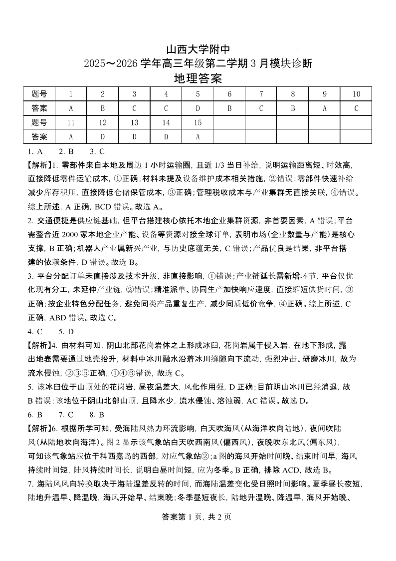 山西大学附属中学校2025-2026学年高三年级第二学期3月模块诊断 地理答案.pdf