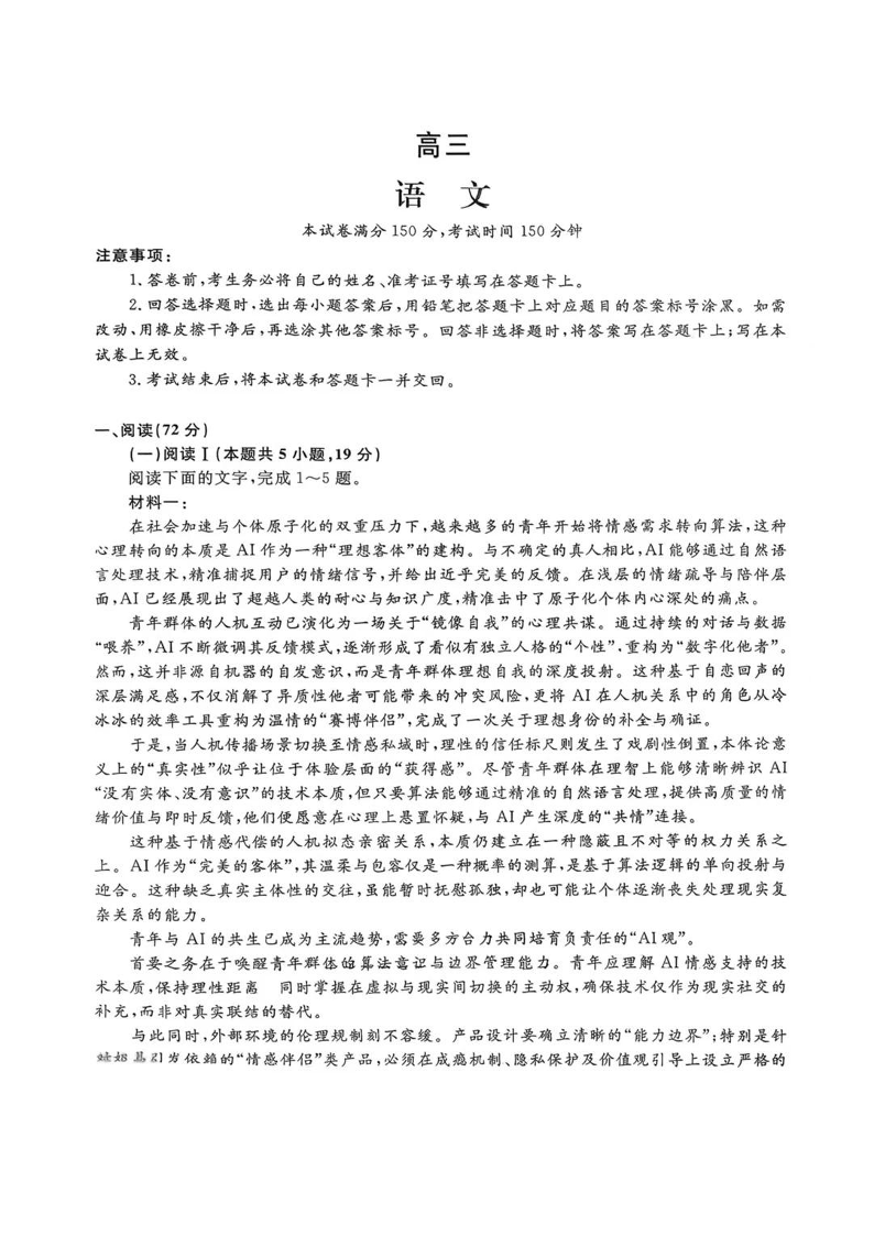 江苏省顶尖九校2026届高三年级联考 语文试题(含答案).pdf