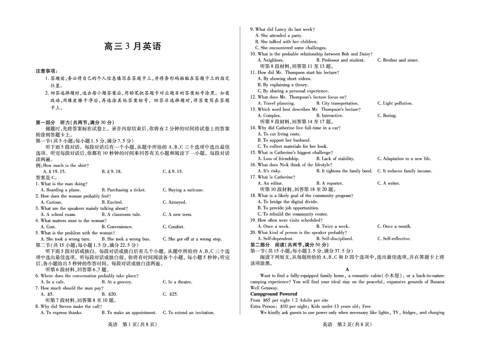 安徽省部分学校2026届高三3月联考 英语.pdf