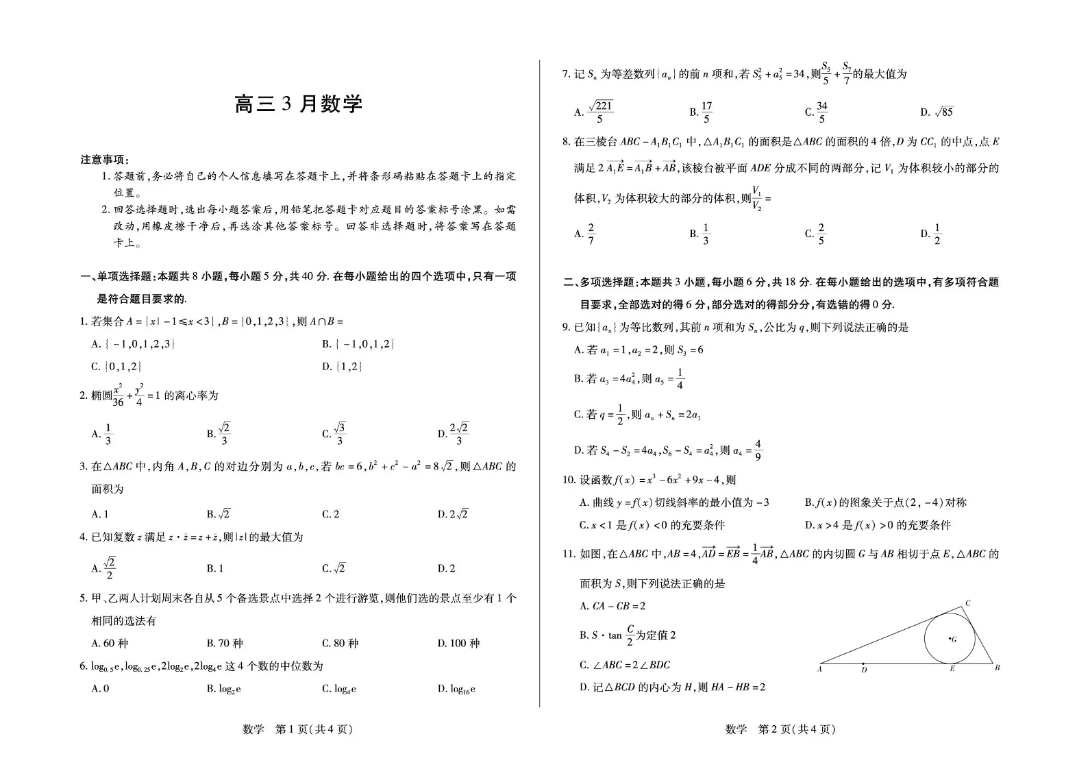 安徽省部分学校2026届高三3月联考 数学.pdf