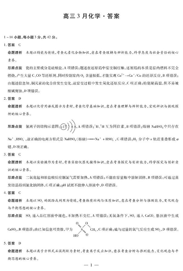安徽省部分学校2026届高三3月联考 化学答案.pdf