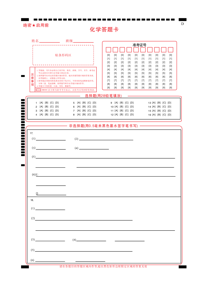 2026届高三供题训练(二)化学答题卡.pdf