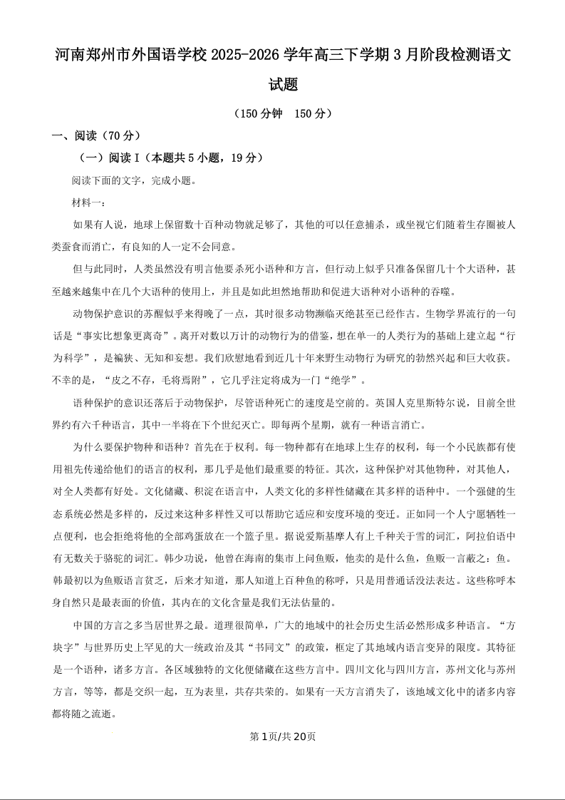 郑州外国语学校2025-2026学年下期高三调研6考试试卷 语文答案.docx