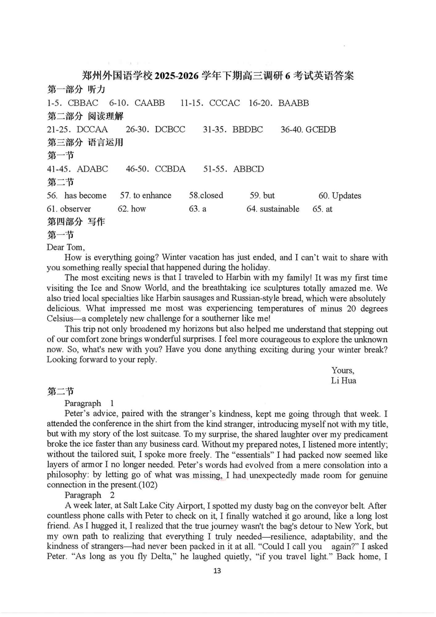 郑州外国语学校2025-2026学年下期高三调研6考试试卷 英语答案.pdf