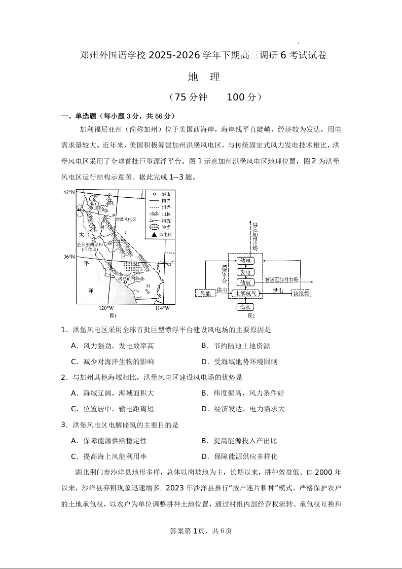 郑州外国语学校2025-2026学年下期高三调研6考试试卷 地理.docx