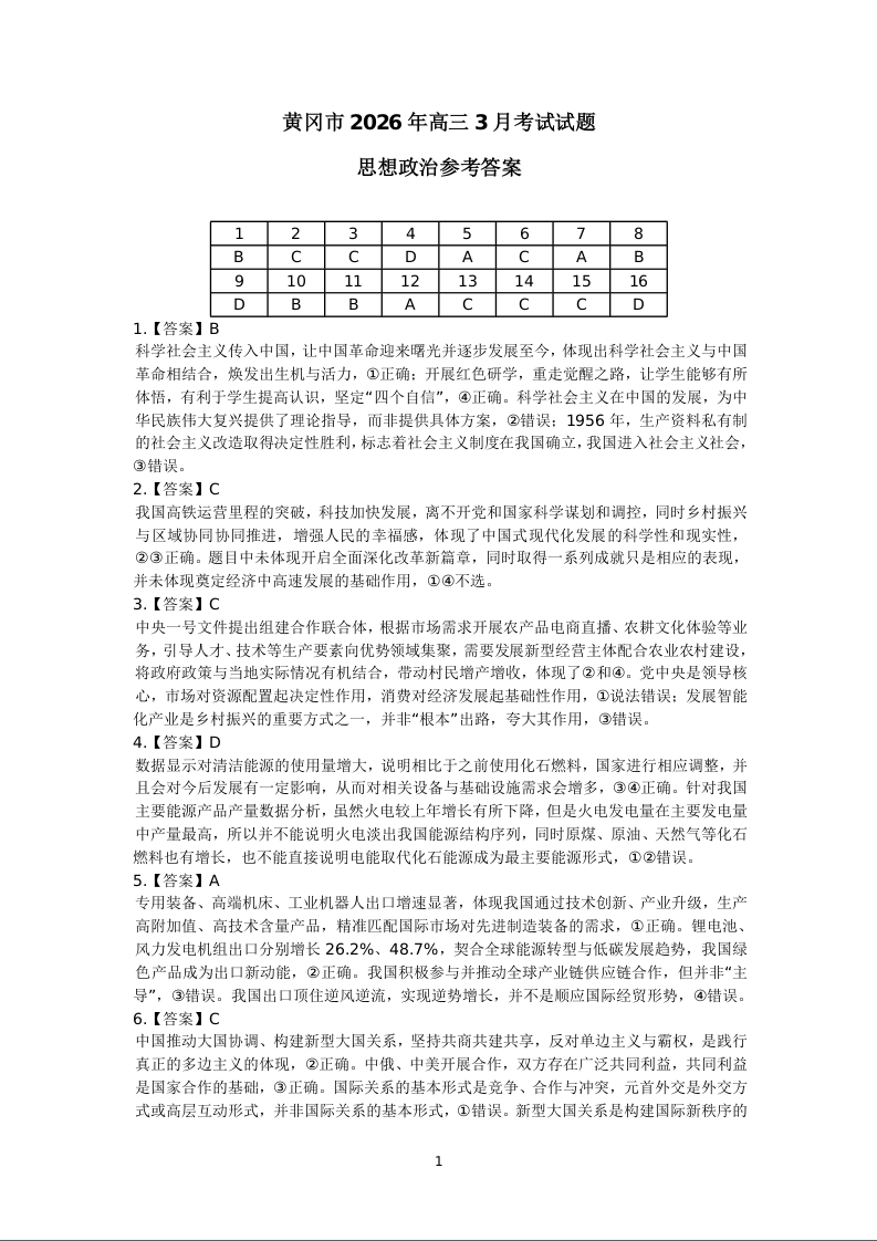 2026年3月高三年级模拟考试 政治答案.docx