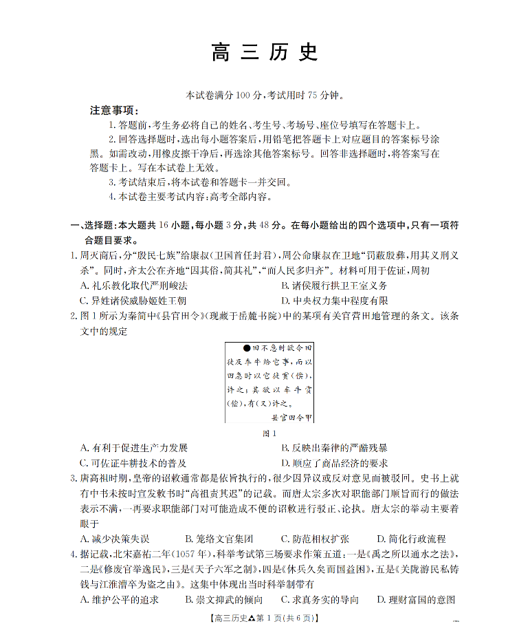 陕西省2026届高三下学期3月联考 历史.pdf