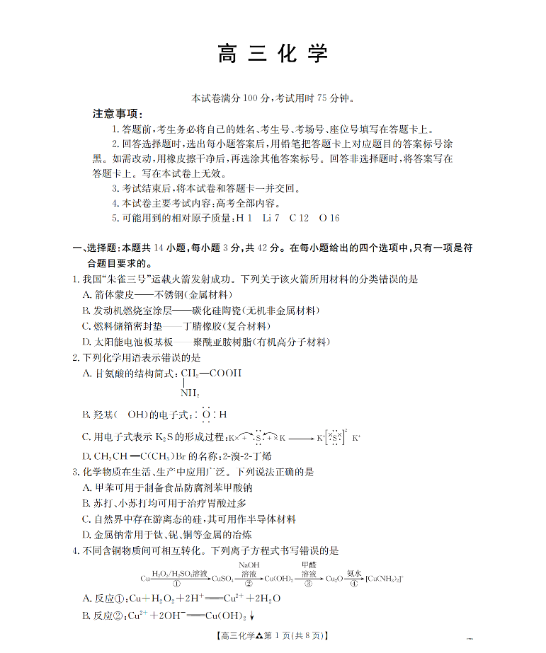 陕西省2026届高三下学期3月联考 化学.pdf