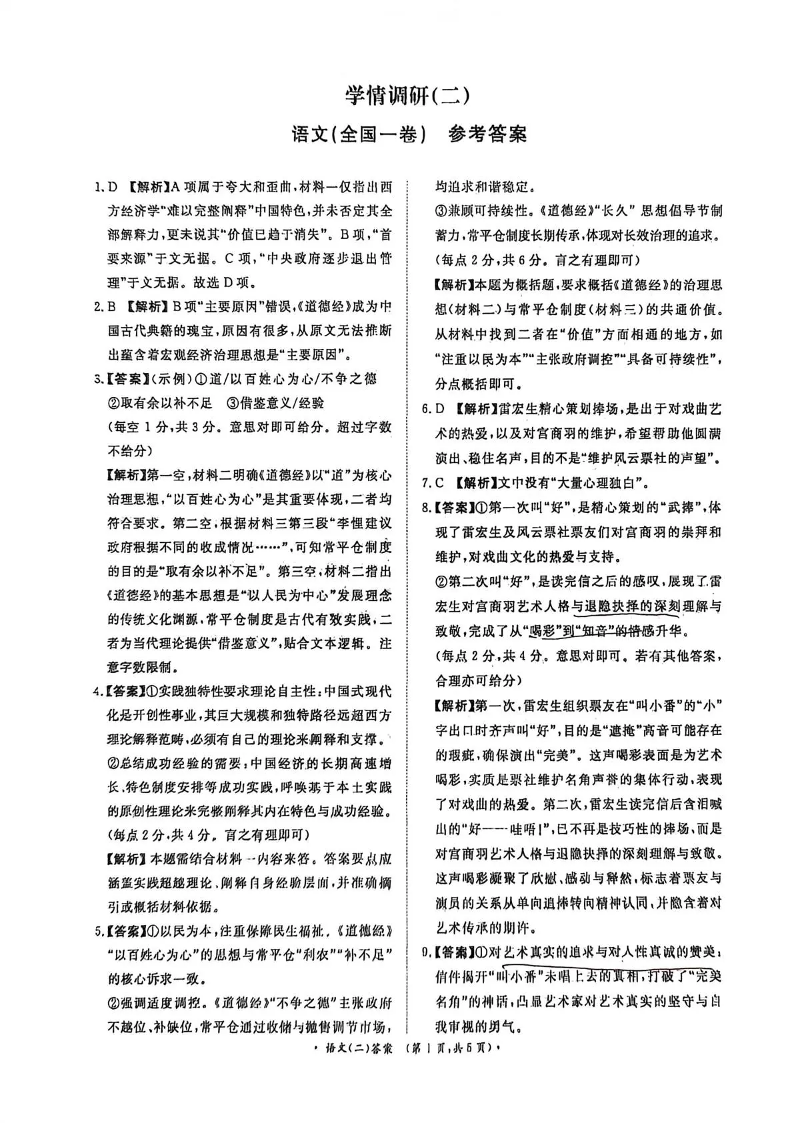 青桐鸣大联考2026届高三下学期学情调研(二)语文答案.pdf