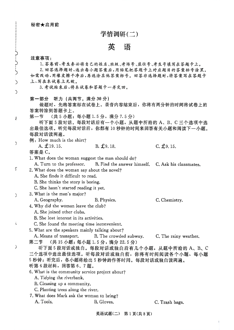 青桐鸣大联考2026届高三下学期学情调研(二)英语.pdf