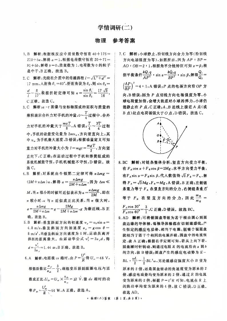 青桐鸣大联考2026届高三下学期学情调研(二)物理答案.pdf