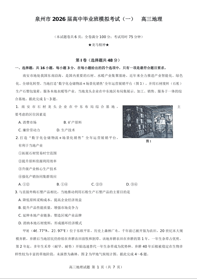 泉州市2026届高中毕业班模拟考试(一)地理.docx
