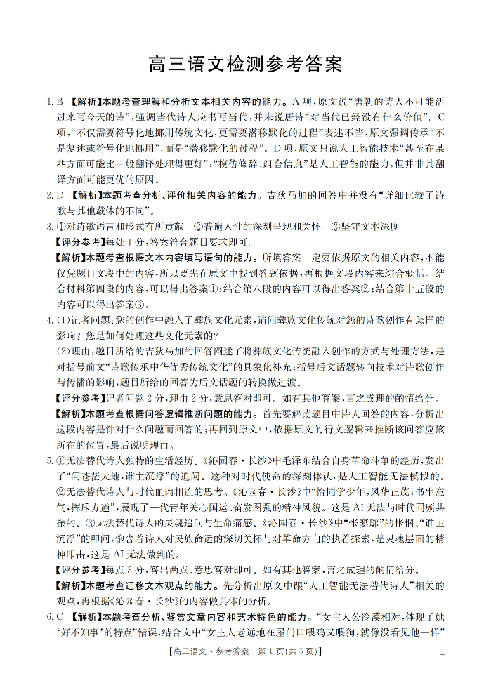 四川省2026届高三下学期3月联考 语文答案.pdf