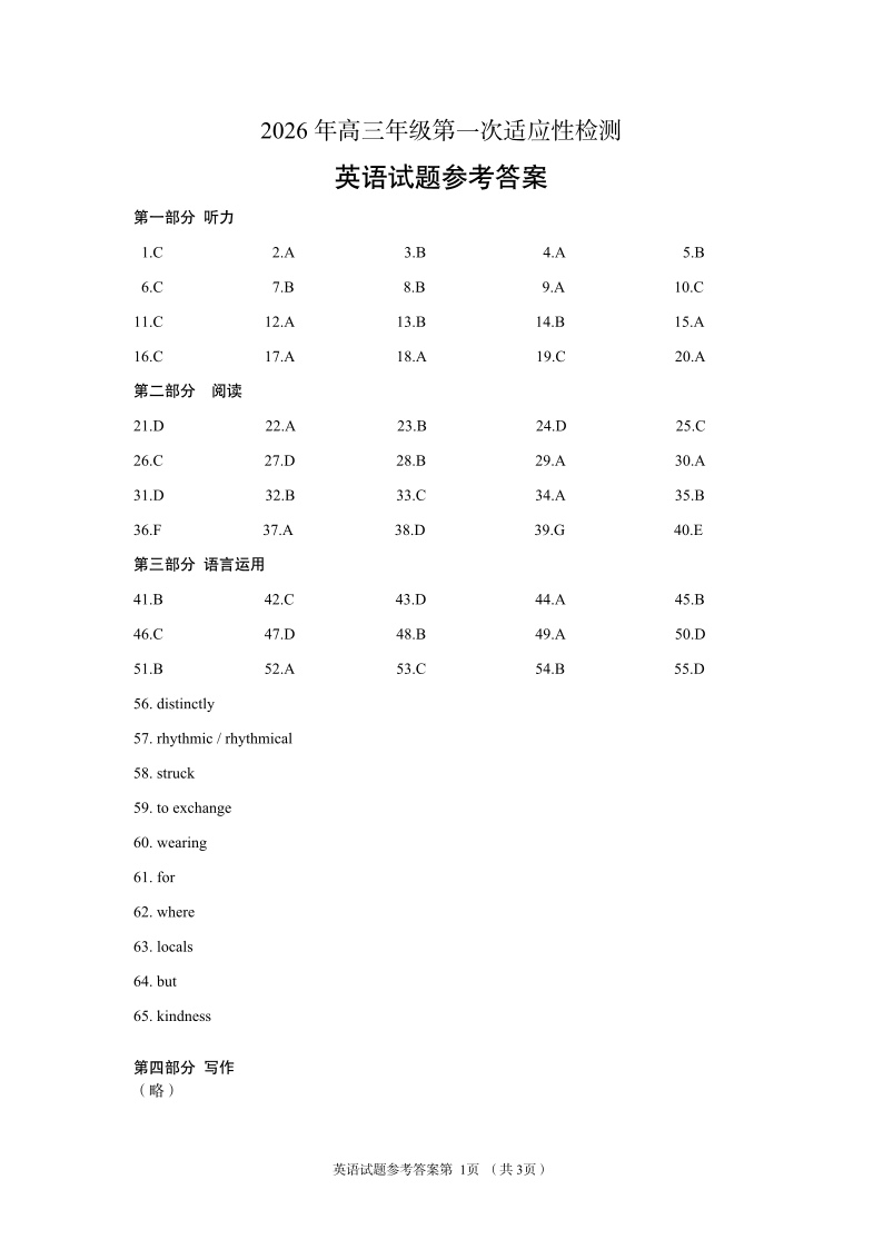 青岛市2026年高三年级第一次适应性检测 英语答案.pdf