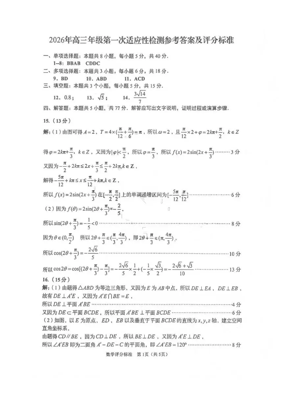 青岛市2026年高三年级第一次适应性检测 数学答案.pdf