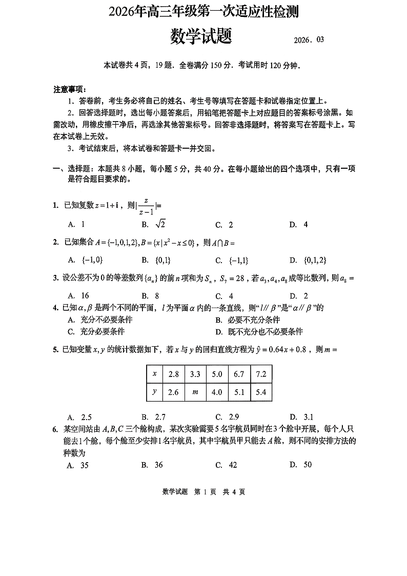 青岛市2026年高三年级第一次适应性检测 数学.pdf