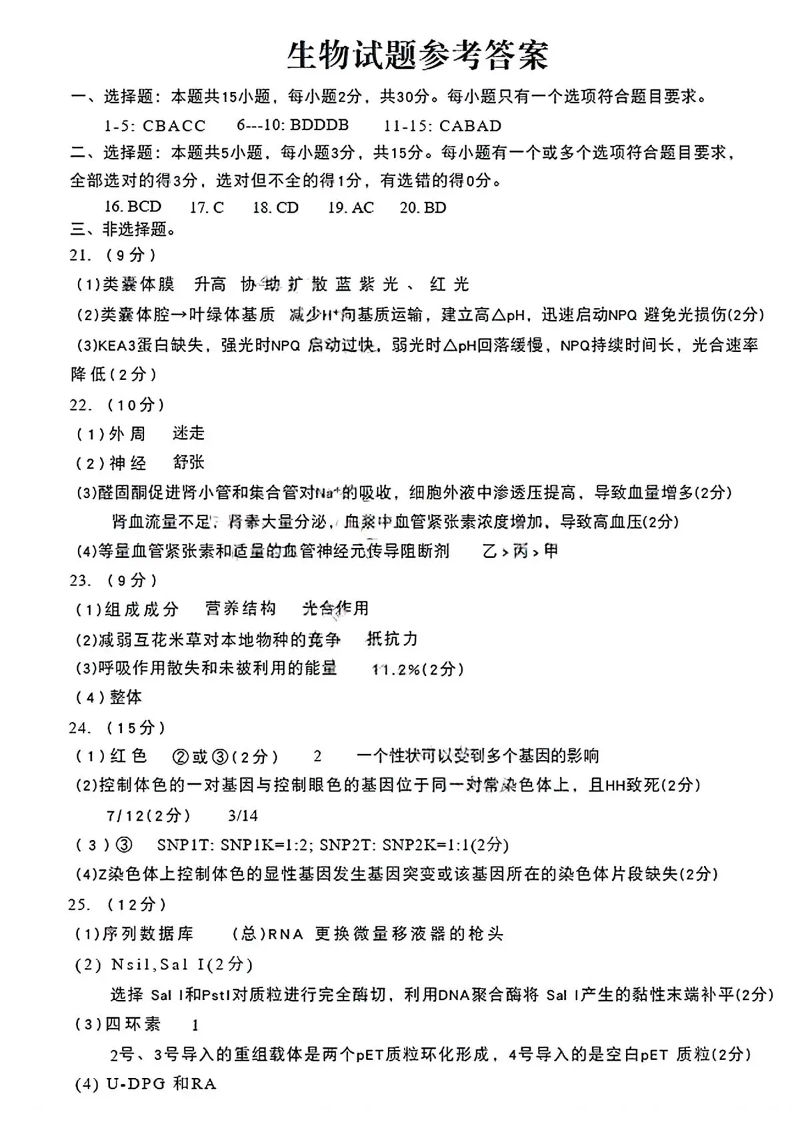 青岛市2026年高三年级第一次适应性检测 生物答案.pdf