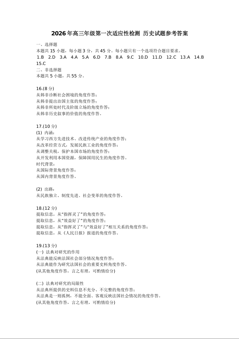 青岛市2026年高三年级第一次适应性检测 历史答案.docx