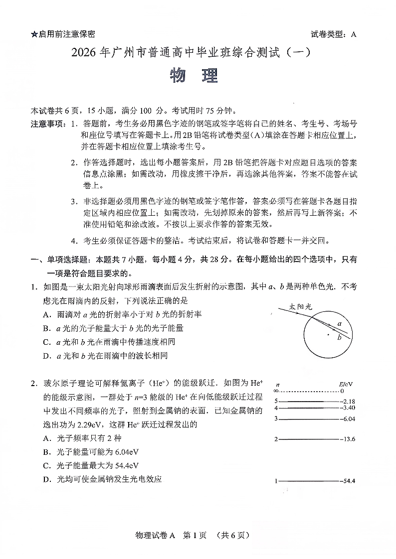 2026年广州市普通高中毕业班综合测试(一)物理.pdf