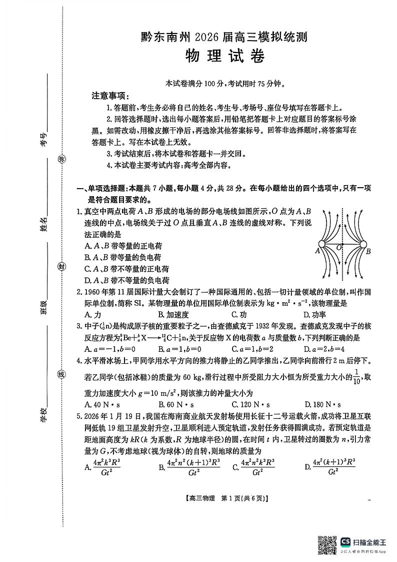 贵州省黔东南州2026届高三3月模拟统测 物理.pdf