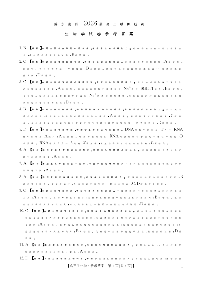 贵州省黔东南州2026届高三3月模拟统测 生物答案.pdf