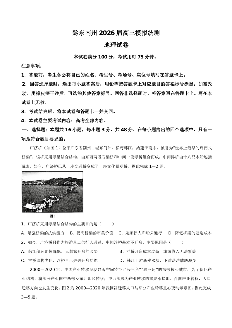 贵州省黔东南州2026届高三3月模拟统测 地理.docx
