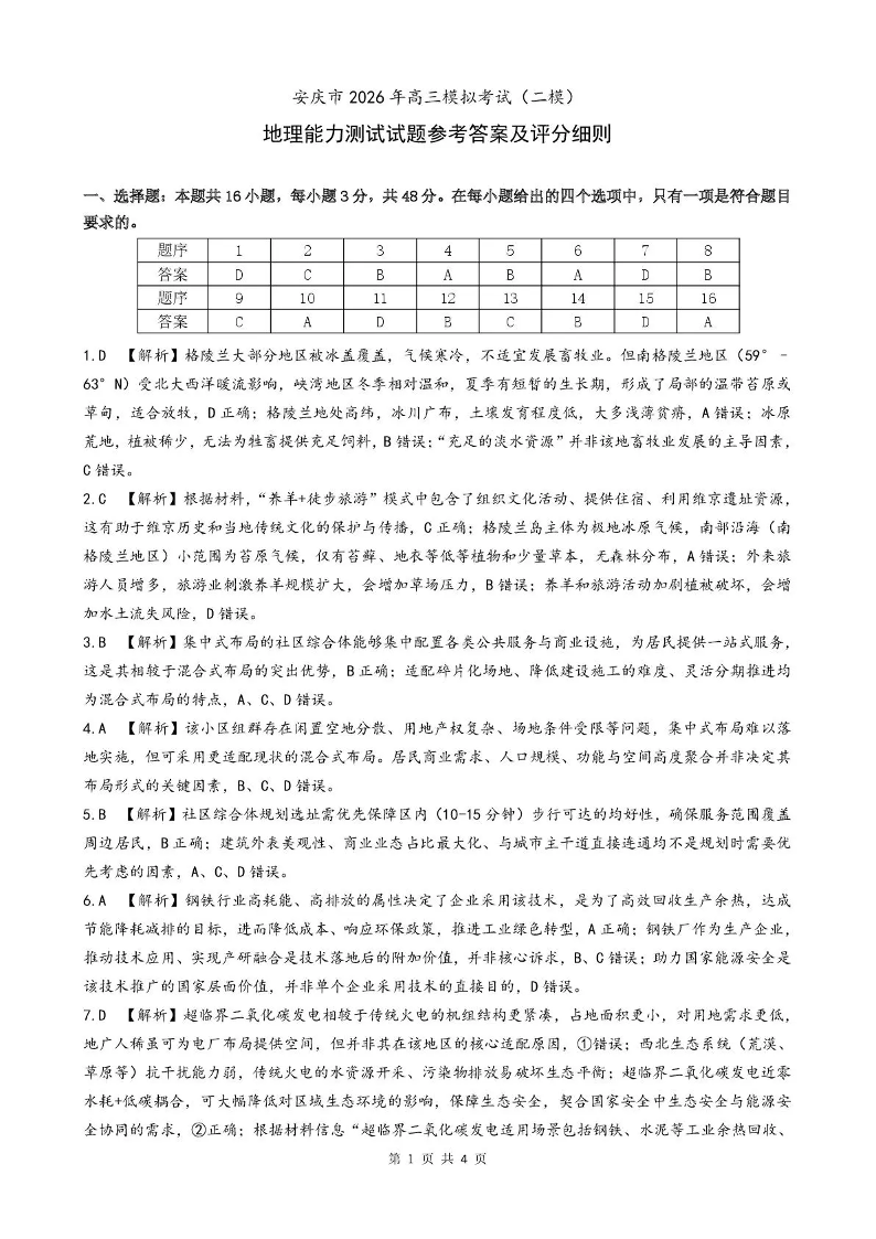 安庆市2026年高三模拟考试(二模)地理答案.pdf