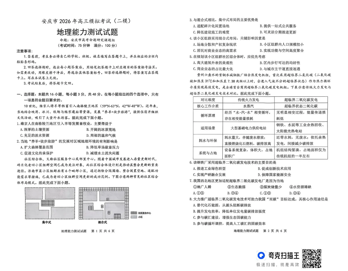安庆市2026年高三模拟考试(二模)地理.pdf
