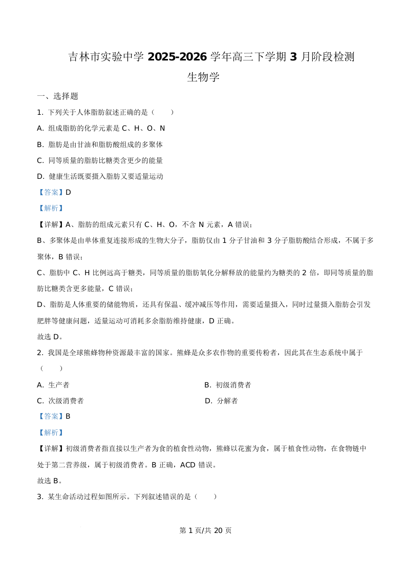 吉林省实验中学2026届高三下学期3月阶段检测 生物答案.docx