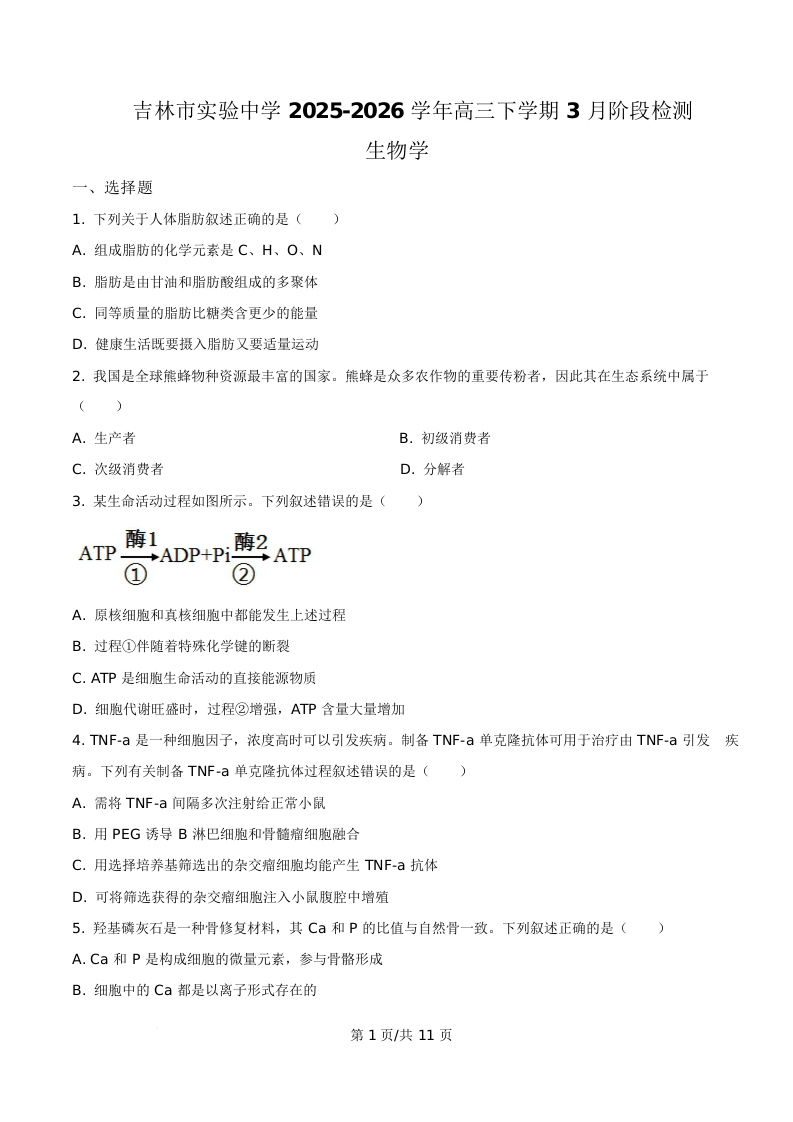 吉林省实验中学2026届高三下学期3月阶段检测 生物.docx