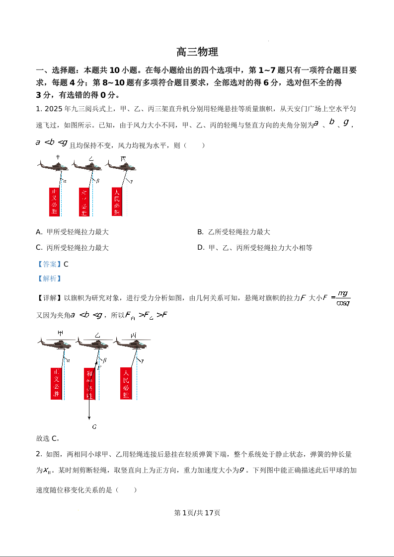 吉林通化市梅河口市第五中学2026届高三下学期一模 物理答案.docx