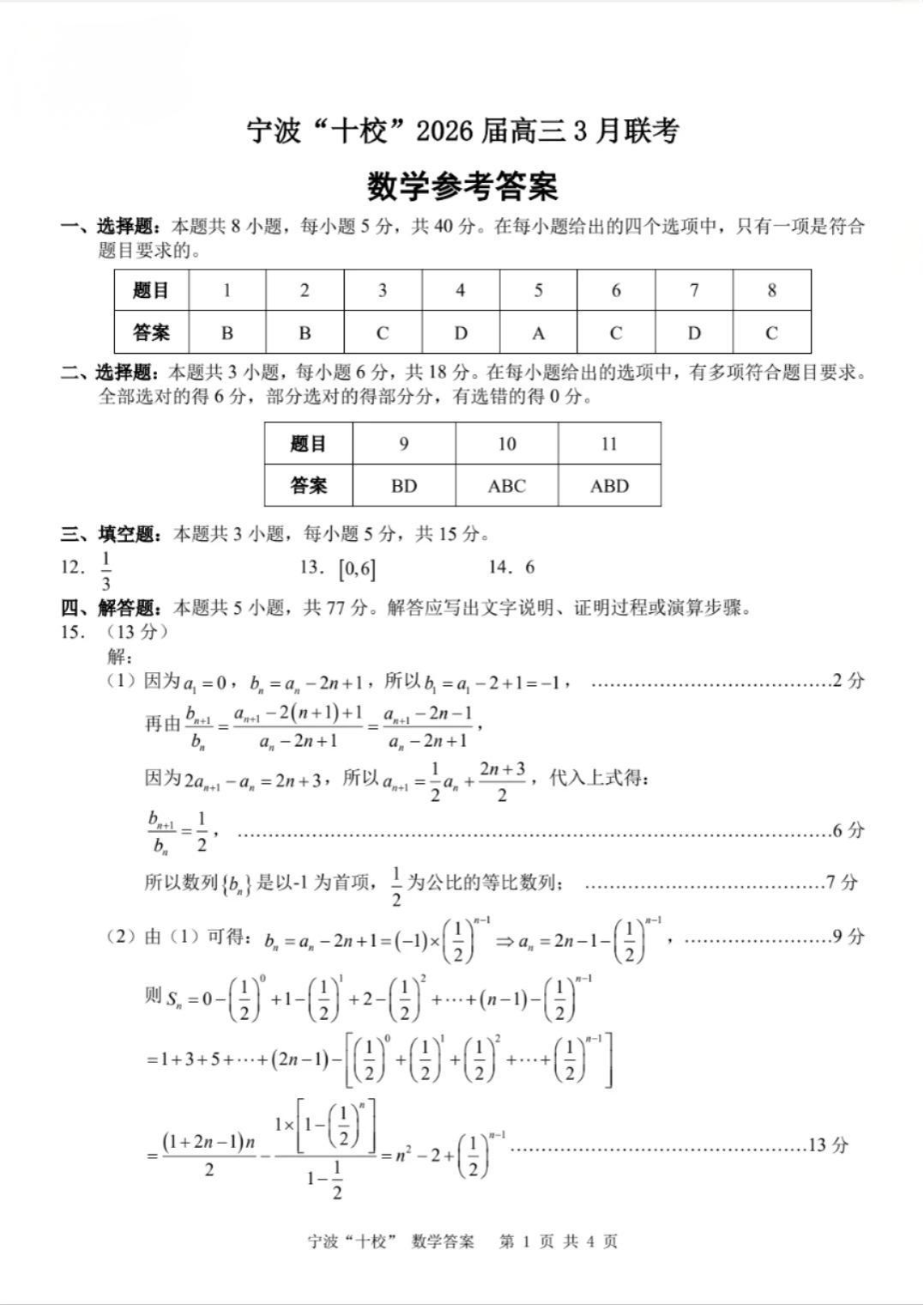 浙江省宁波十校2026届高三年级3月联考 数学答案.pdf