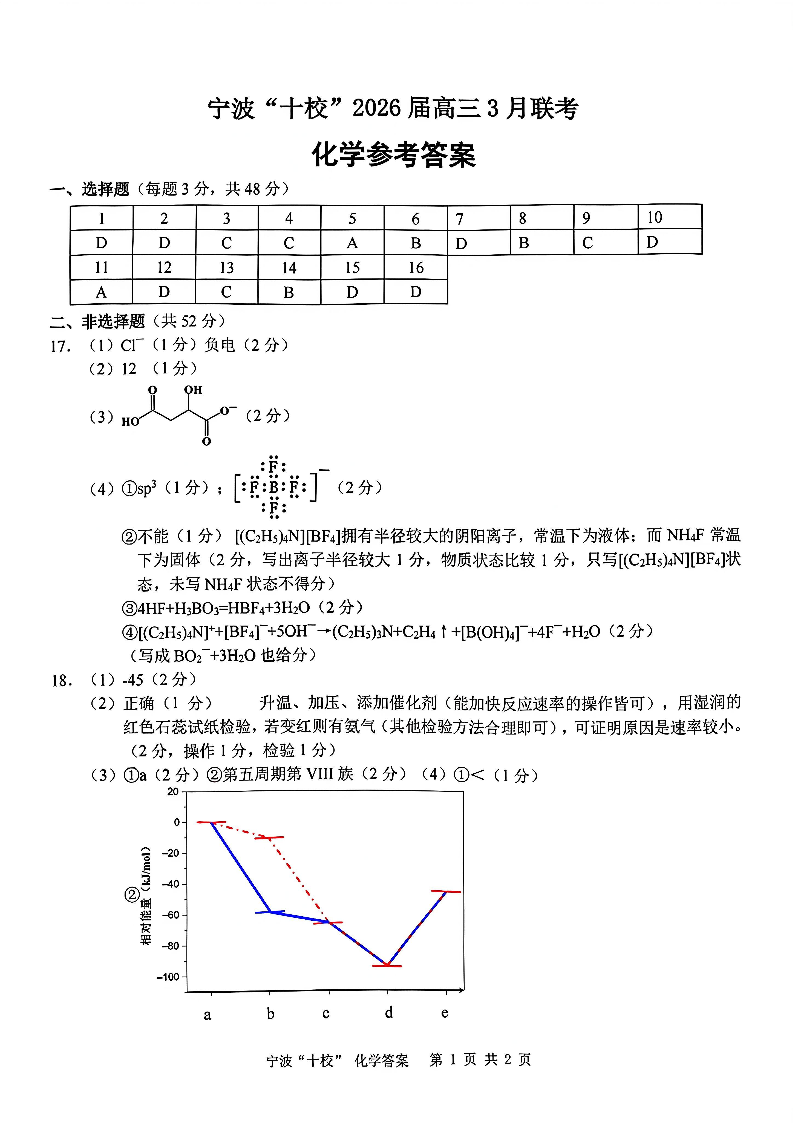 浙江省宁波十校2026届高三年级3月联考 化学答案.pdf