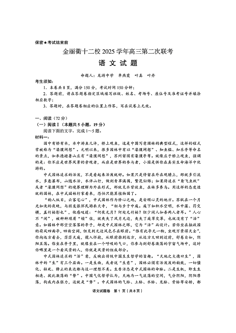 金丽衢十二校2025-2026学年度高三年级第二次联考 语文.pdf