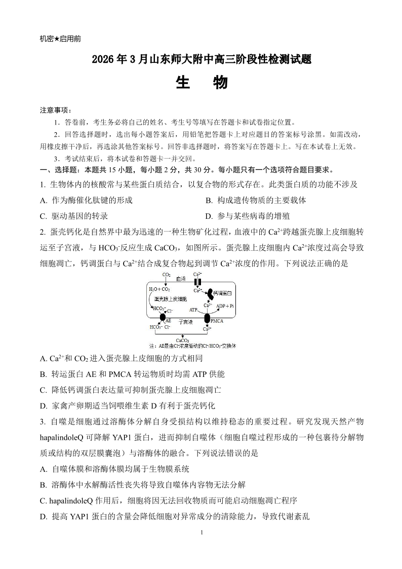 山东师范大学附属中学2026届高三下学期3月阶段检测 生物.pdf