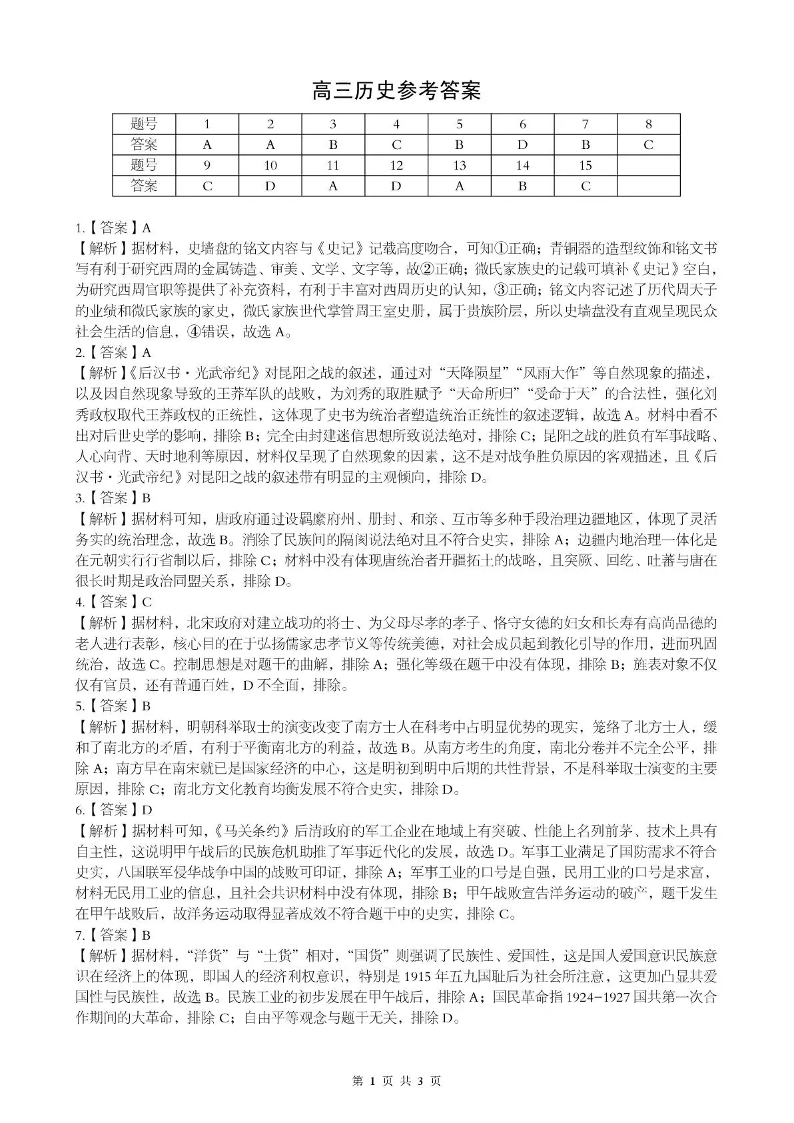 孝感市楚天协作体高三下学期3月联考 历史答案.pdf
