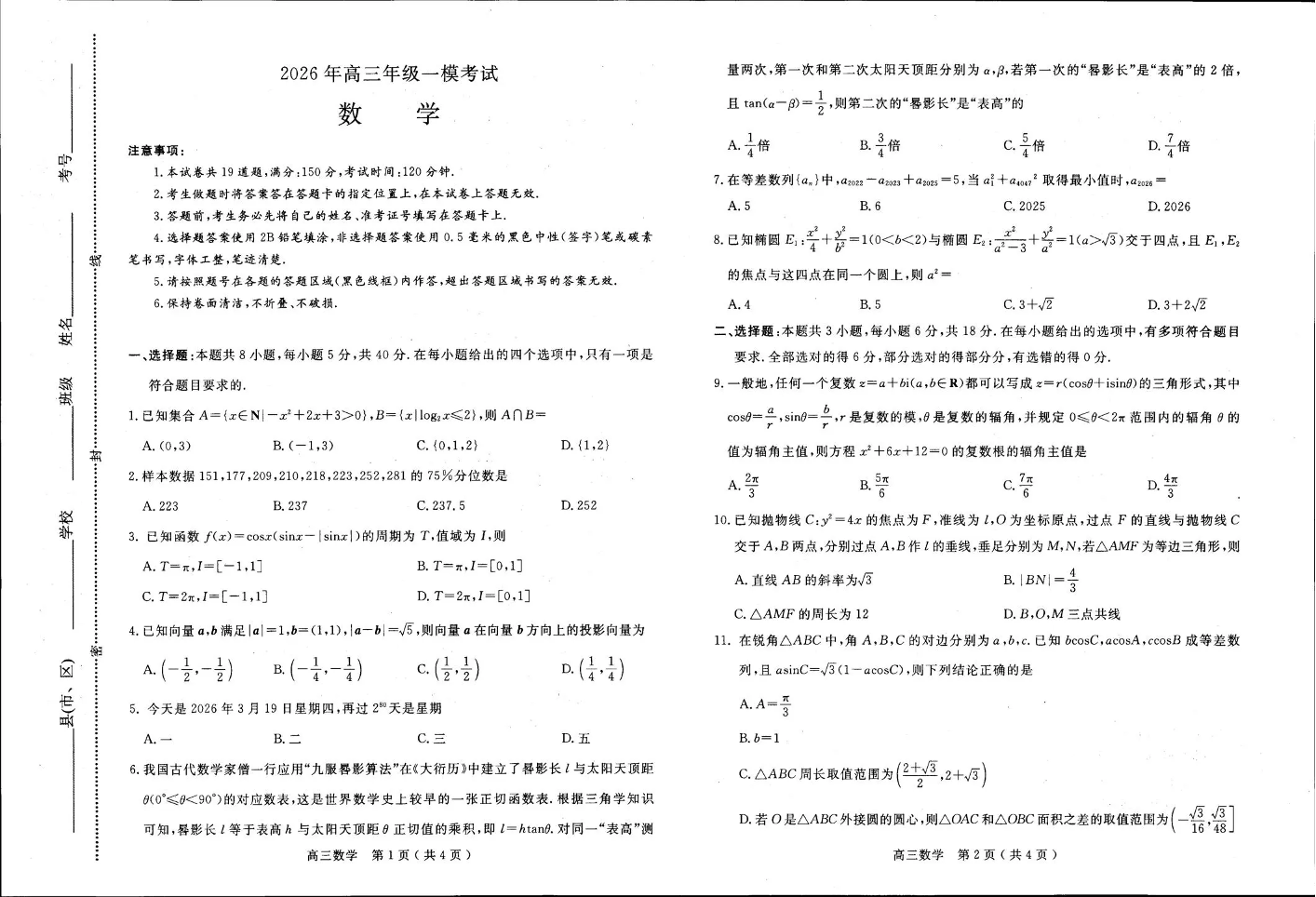 河南省五市2026年高三年级一模考试 数学.pdf