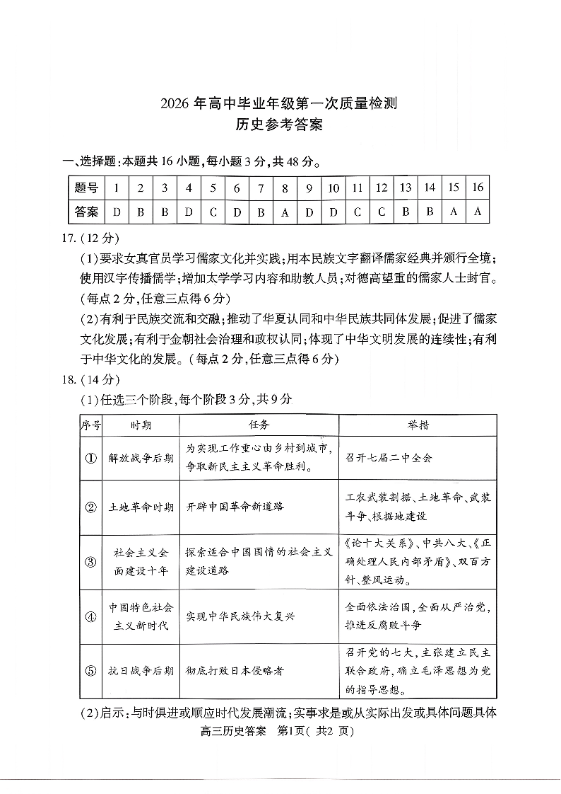 河南省五市2026年高三年级一模考试 历史答案.pdf