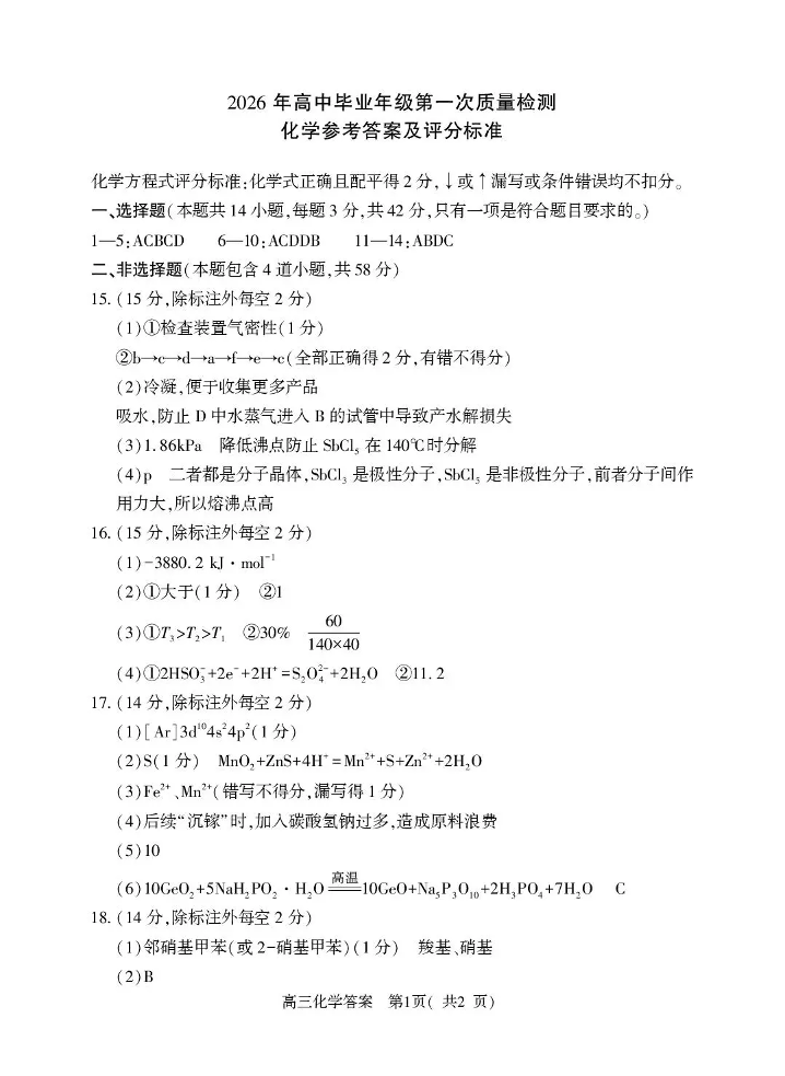 河南省五市2026年高三年级一模考试 化学答案.pdf