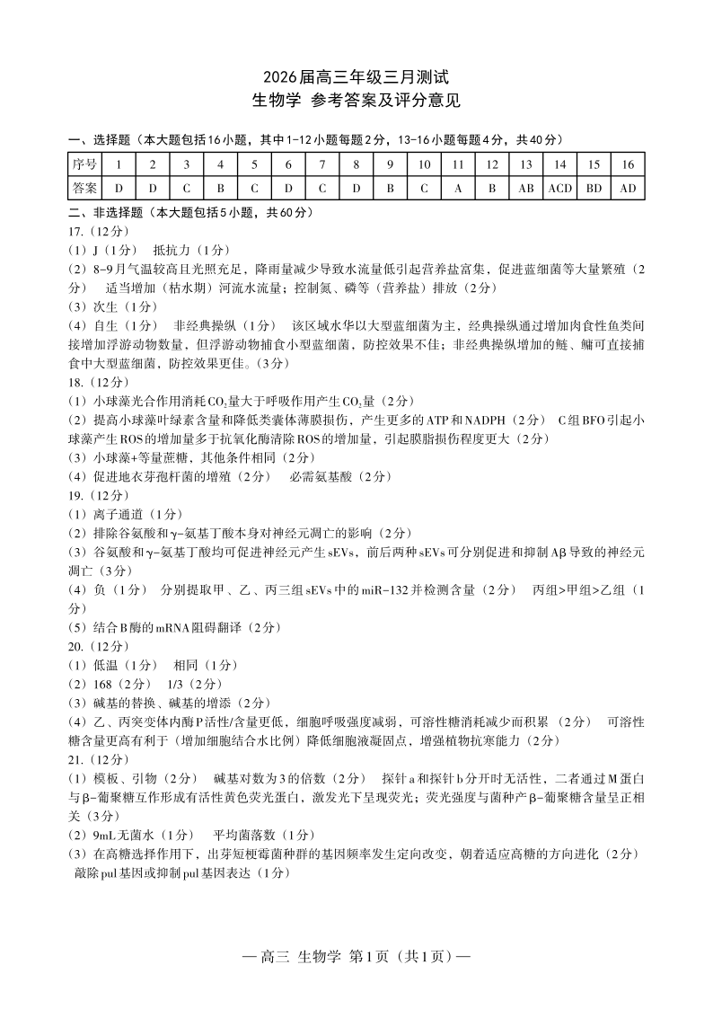 南昌市2025-2026学年高三下学期一模测试 生物答案.pdf
