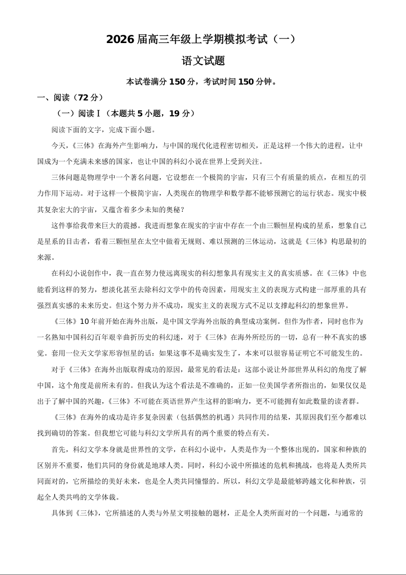 河北省名校协作体2026届高三上学期模拟考试(一)语文.docx