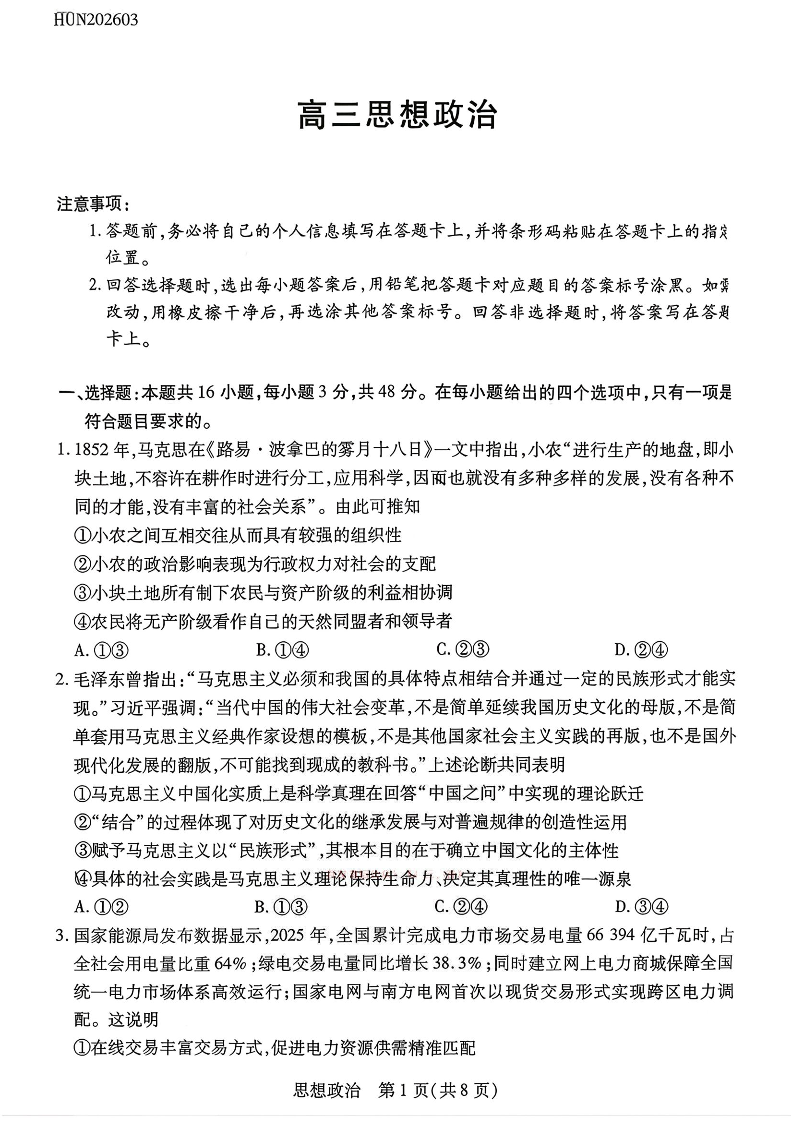 湘一名校联盟2026届高三下学期3月质量检测 政治.pdf