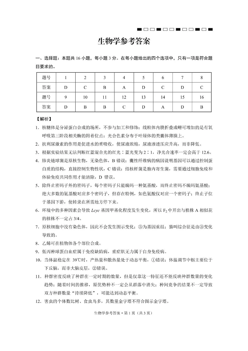 西南名校联盟2026届“3+3+3”高考备考诊断性联考(二)生物答案.pdf
