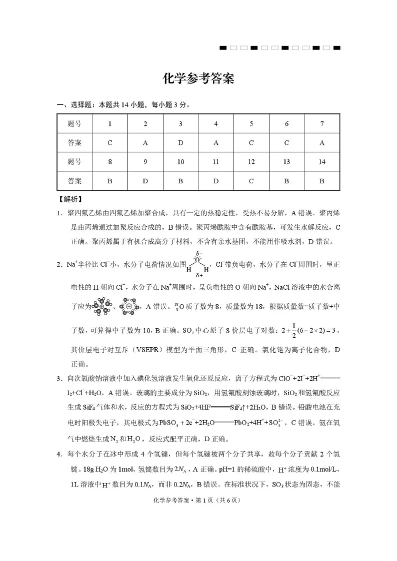 西南名校联盟2026届“3+3+3”高考备考诊断性联考(二)化学答案.pdf